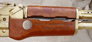 Se trata de una pistola «Glock Mod 18 C»,calibre 9 mm. Parabellun y era la que portaba nada menos que Saddan Hussein en el momento de su captura.Durante el mandato del anterior presidente de los EE.UU.,estuvo como elemento decorativo en su despacho.Al terminar la legislatura el presidente Bush la dono al museo de la Universidad de Dallas (Texas).