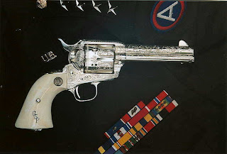 .- Otra arma,en este caso un revolver ya de por sí famoso,el Colt 45,al que el general George S. Patton,encumbró de manera definitiva.De todos es conocida la veneración que el General sentia por las armas salidas de la Fábrica Colt.